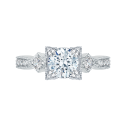 Princess Diamond Halo Vintage Engagement Ring In 14K White Gold (Semi-Mount)