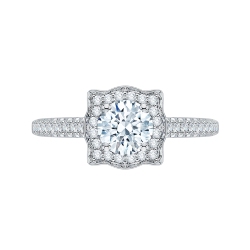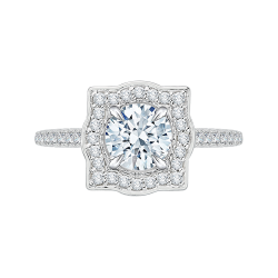 14K White Gold Round Diamond Halo Vintage Engagement Ring (Semi-Mount)