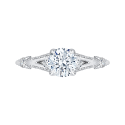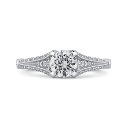 14K White Gold Round Diamond Vintage Engagement Ring with Split Shank (Semi-Mount)
