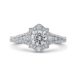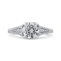 Round Diamond Vintage Engagement Ring In 14K White Gold (Semi-Mount)