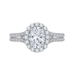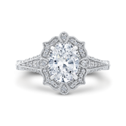 14K White Gold Oval Diamond Halo Vintage Engagement Ring (Semi-Mount)