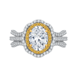 14K Two-Tone Gold Oval Diamond Double Halo Vintage Engagement Ring (Semi-Mount)