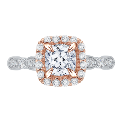 Cushion Diamond Halo Vintage Engagement Ring In 14K Two-Tone Gold (Semi-Mount)