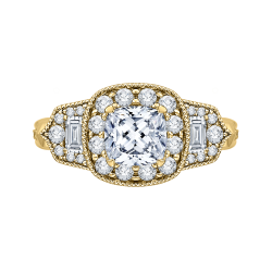 14K Yellow Gold Cushion Diamond Halo Vintage Engagement Ring (Semi-Mount)