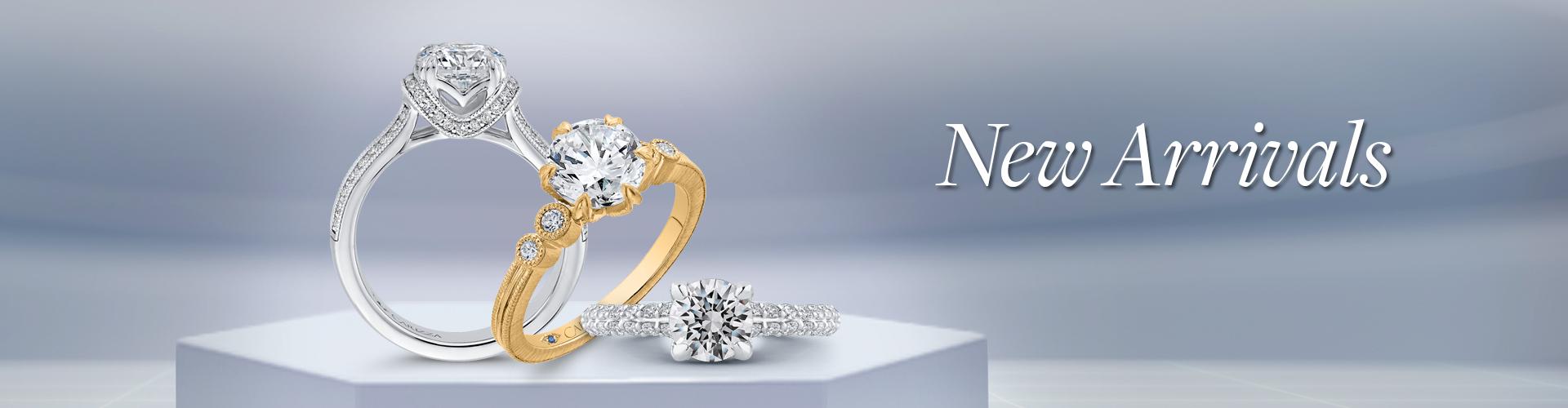 14K Two Tone Gold Three Stone Plus Round Diamond Engagement Ring