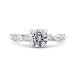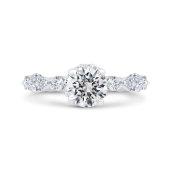 Round Cut Diamond Floral Engagement Ring In 14K White Gold (Semi-Mount)