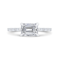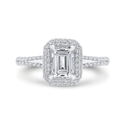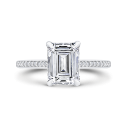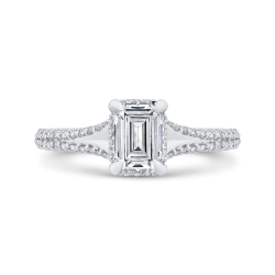 Emerald Diamond Engagement Ring In 14K White Gold with Split Shank (Semi-Mount)