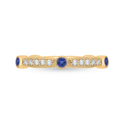 14K Yellow Gold Round Diamond Wedding Band with Sapphire