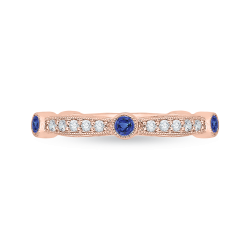 14K Rose Gold Round Diamond Wedding Band with Sapphire