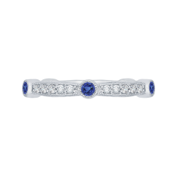 14K White Gold Round Diamond Wedding Band with Sapphire