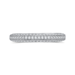 14K White Gold Round Eternity Diamond Wedding Band with Criss-Cross Crossover Shank